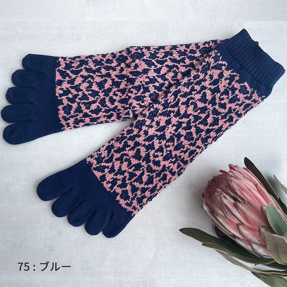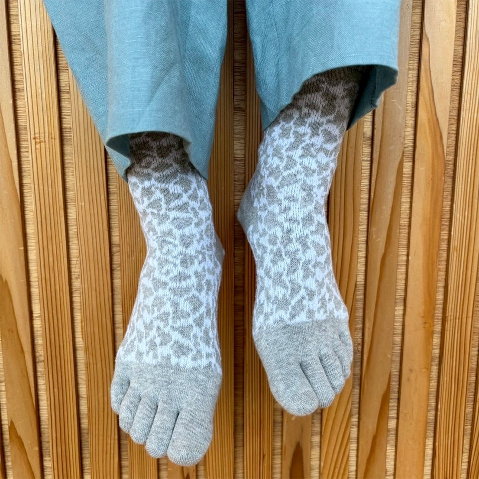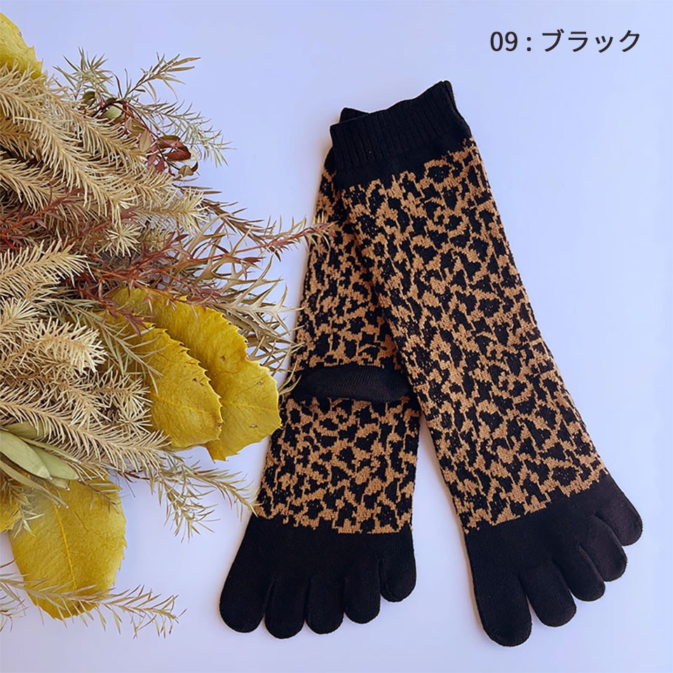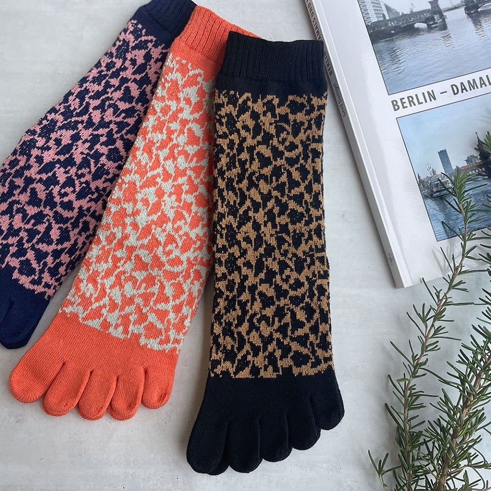 knitido カジュアル ヒョウ柄 ロークルー 5本指ソックス