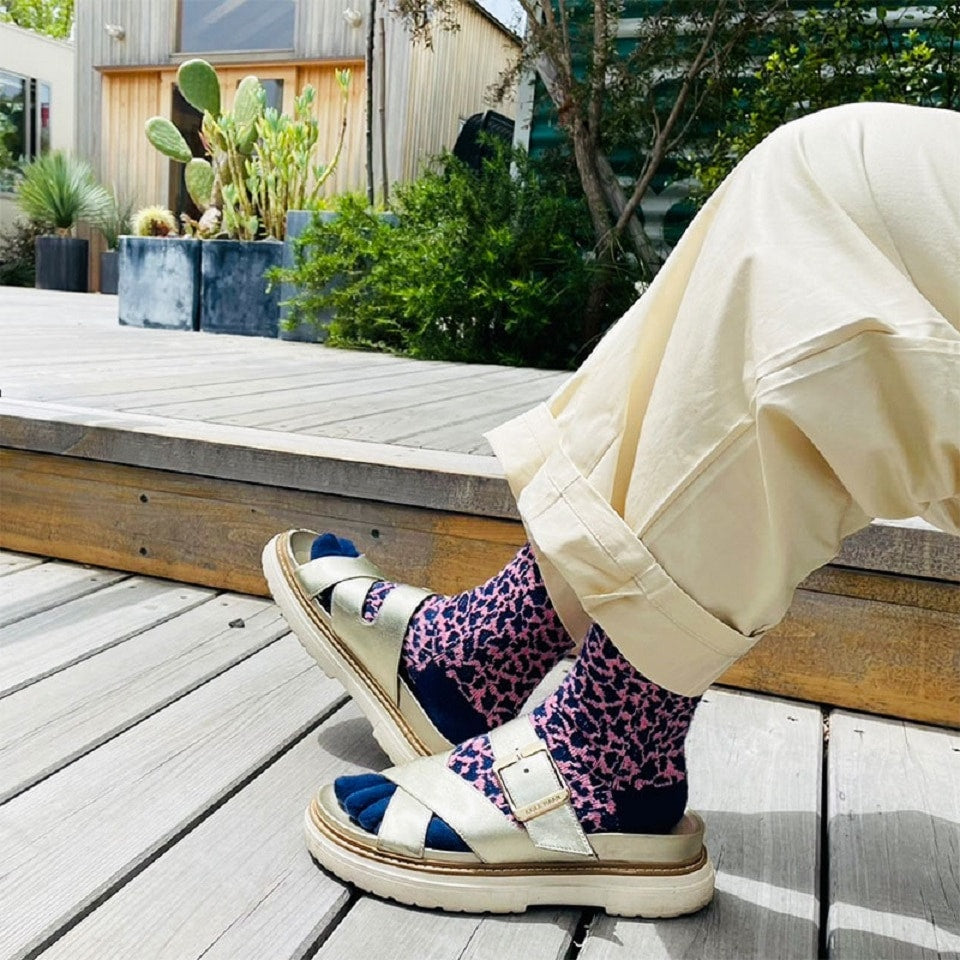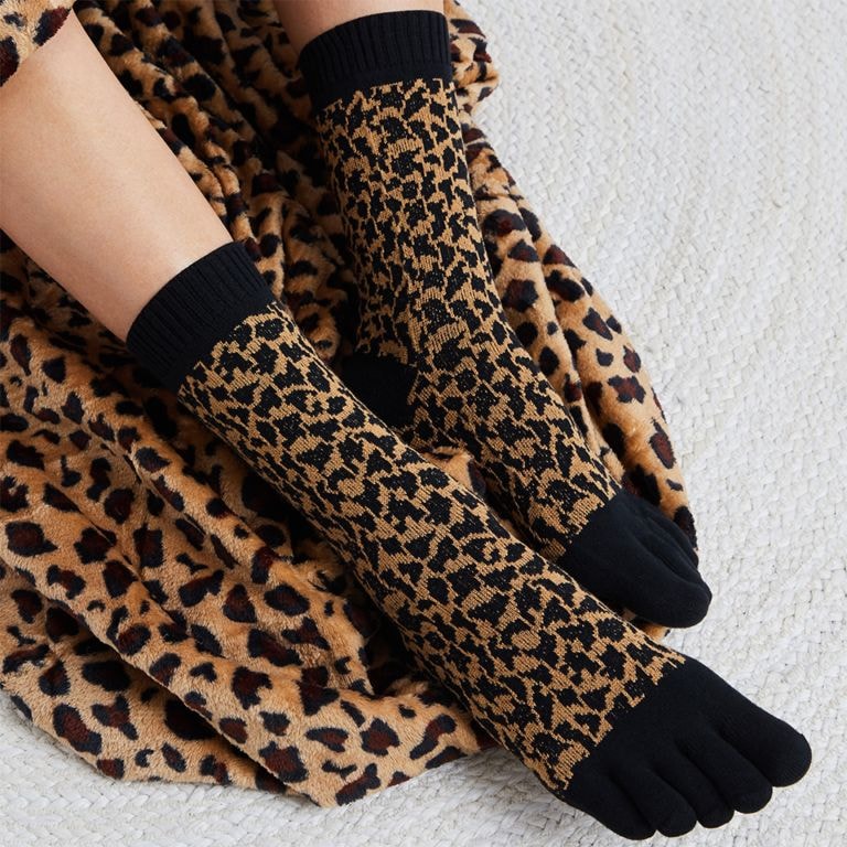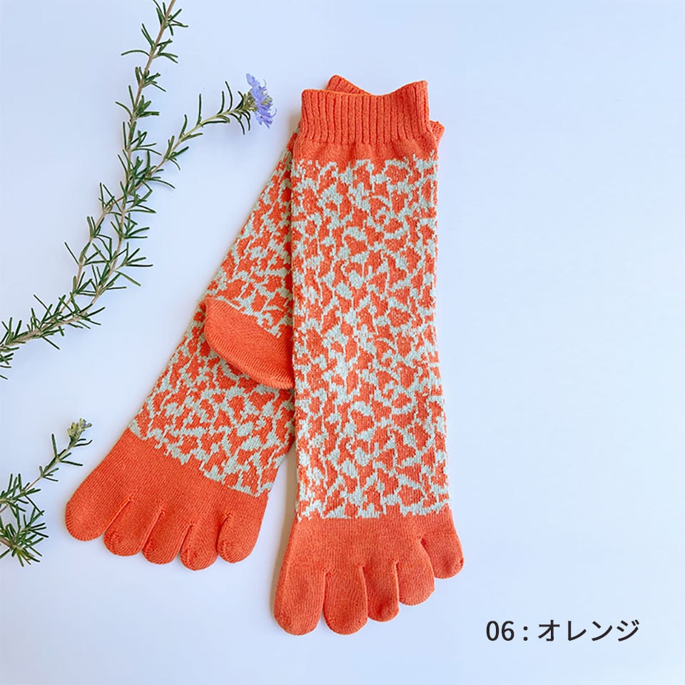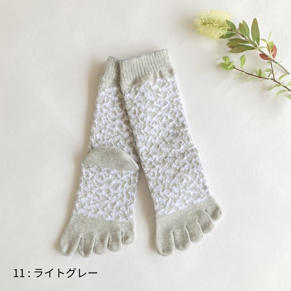 knitido カジュアル ヒョウ柄 ロークルー 5本指ソックス
